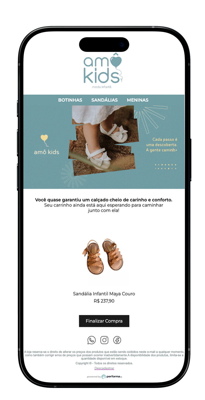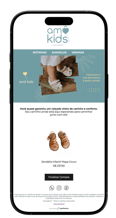 Com um template personalizado, sua marca fala a língua do consumidor, cria urgência, destaca os produtos esquecidos e transmite confiança.